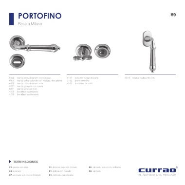 21. pulido con laca 41. bronce viejo con dorado 62. satinado con cromo brillante